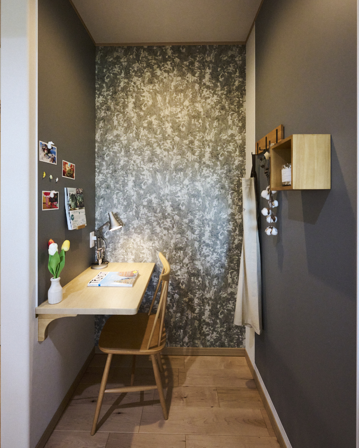 家の事務作業って、ダイニングだと散らかるし溜め込むと大変。でも専用スペースがあれば話は別。好きな壁紙に囲まれて作業できたら、面倒なこともちょっと楽しくなりそうですよね。