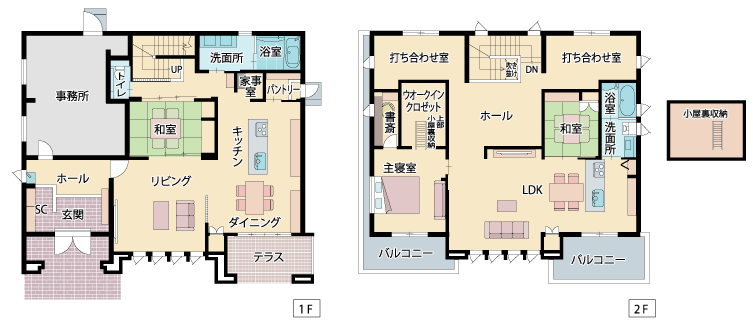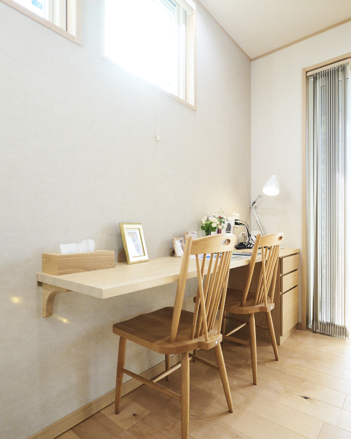 子どもの勉強スペース、パパの書斎、ママのメイクルーム、家族の小上がり和室。