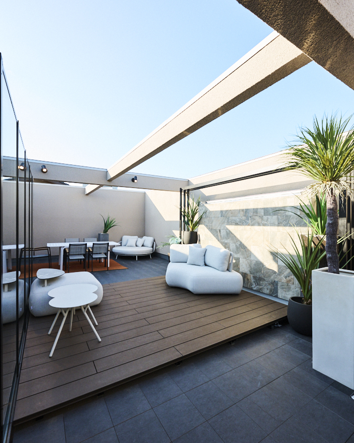 - プライベート感たっぷりのアウトドアリビング