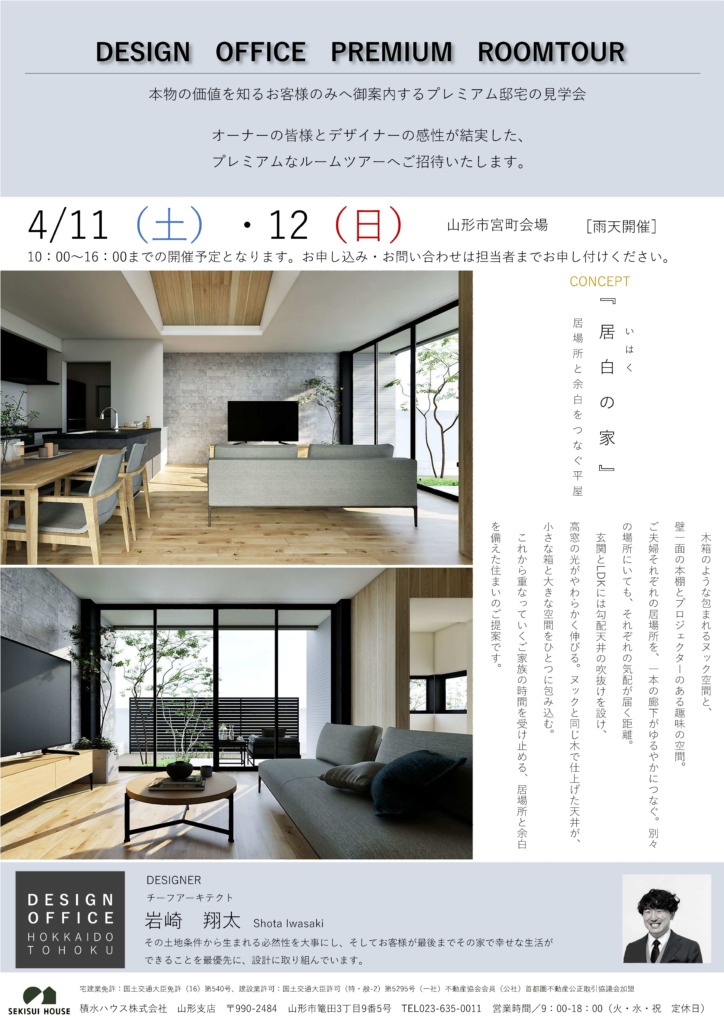 【積水ハウス】4/11(土)・12(日)DESIGN OFFICE プレミアムルームツアー開催!
