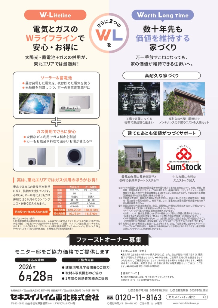 【セキスイハイム東北】ファーストオーナー募集キャンペーン実施中〈6月28日(火)まで〉